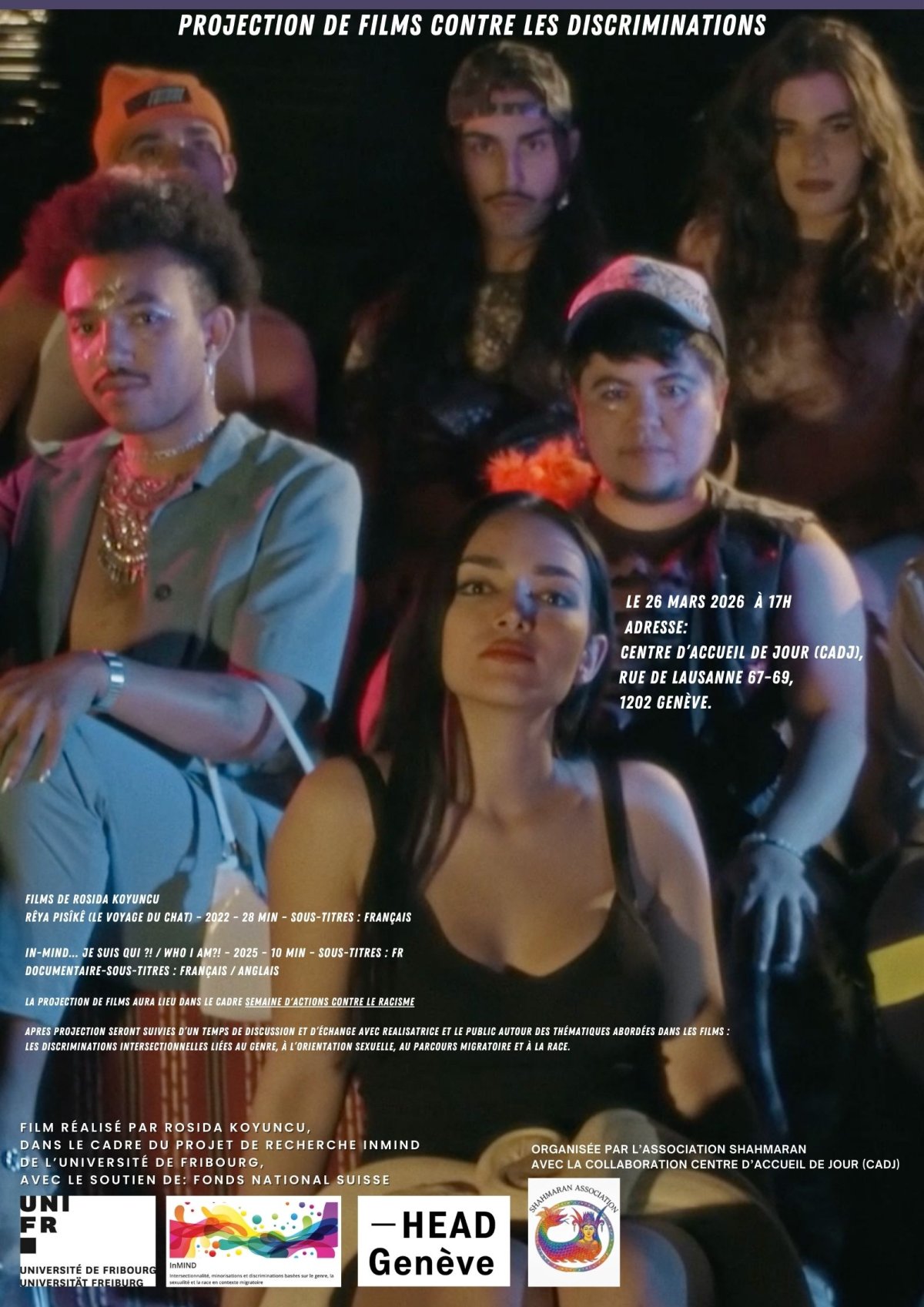 Ce court métrage a été réalisé dans le cadre du projet de recherche InMIND de l’Université de Fribourg. Le film aborde les discriminations croisées vécues par les demandeur·euse·s d’asile, les réfugié·e·s et les migrant·e·s LGBTIQ+ en Suisse, ainsi que par les personnes issues de l’immigration.