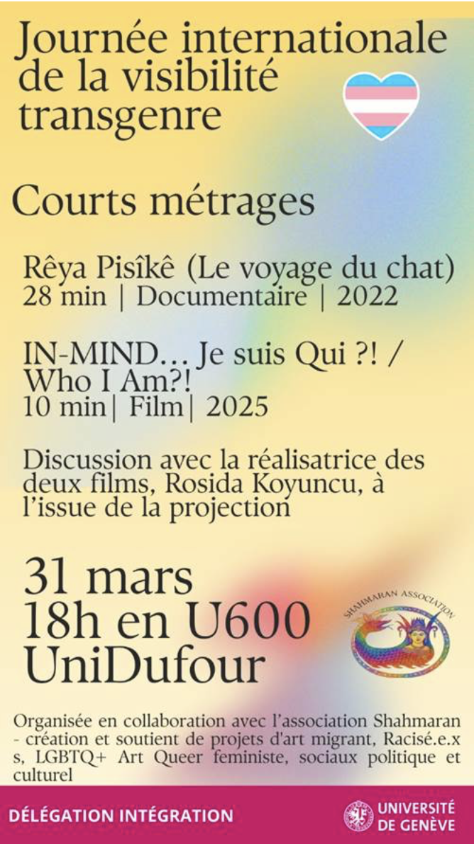 Programme Horizon Académique: Dans le cadre Journée internationale de la visibilité transgenre : https://www.unige.ch/horizon-academique/mentorat/activite-de-printemps-2026